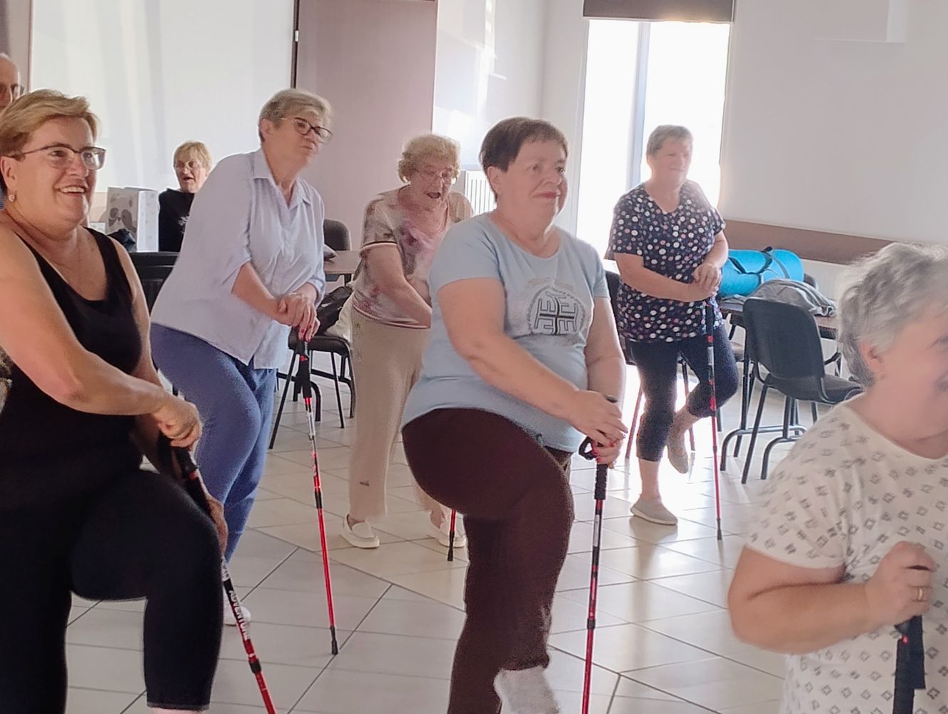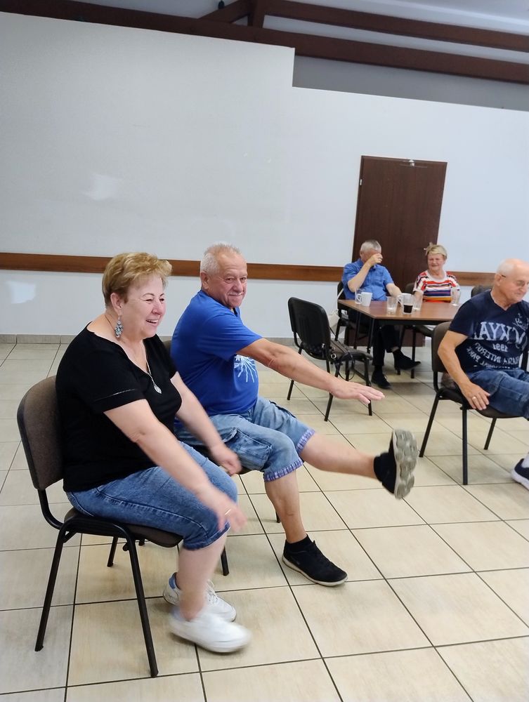 Uśmiechy na twarzach mówiły same za siebie: Pani Kasia z Centrum Zdrowia to nie tylko świetna fizjoterapeutka, ale też mistrzyni motywacji z olbrzymim poczuciem humoru. Dzięki niej nasze seniorki i seniorzy wiedzą, że można ćwiczyć, wzmacniać ciało i jednocześnie bawić się jak na najlepszej imprezie 😍