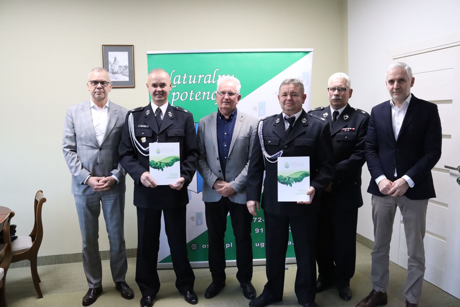Kończący 2025 rok przyniósł naszym Ochotniczym Strażom Pożarnym w Węgorzy i Osinie pozytywne decyzje o wsparciu finansowym projektów w Ogólnopolskim Programie finansowania służb ratowniczych, Część 3) Modernizacja energetyczna budynków Ochotniczych Straży Pożarnych, dofinansowanym przez Narodowy Fundusz Ochrony Środowiska i Gospodarki Wodnej a realizowanym przez Wojewódzki Fundusz Ochrony Środowiska i Gospodarki Wodnej w Szczecinie, nazywanym Bitwa o remizy. W poniedziałek 22 grudnia w gabinecie Wójta Pana Krzysztofa Szwedo, Prezes Wojewódzkiego Funduszu Ochrony Środowiska w Szczecinie Pan Waldemar Miśko w obecności Kierownika Zespołu ds. Obsługi Wniosków Pana Sebastiana Kaczmarka, Gminnego Komendanta Straży Pożarnej Pana Zygmunta Andrzejewskiego wraz z Prezesami OSP Węgorza Panem Sławomirem Kopieckim i OSP Osina Panem Mariuszem Księżukiem, podpisali umowę na dofinansowanie termomodernizacji budynków OSP w Węgorzy i Osinie. Projekty opiewają na kwoty do 250.000,00 zł każda. Działania te obejmują wymianę stolarki okiennej i drzwiowej, ocieplenie ścian budynków a ponadto termomodernizację dachu na remizie w Osinie oraz montaż fotowoltaiki. Prace będą prowadzone w 2026 roku. Strażacy Ochotnicy z jednostek w Węgorzy i Osinie podziękowali Panu Wójtowi za wszechstronną pomoc w przygotowaniu i złożeniu wniosku o dofinasowanie. Spotkanie było również okazją do wzajemnego przekazania życzeń spokoju, radości z chwil spędzonych w rodzinnym gronie i zdrowia w nadchodzące Święta Bożego Narodzenia oraz 2026 rok.