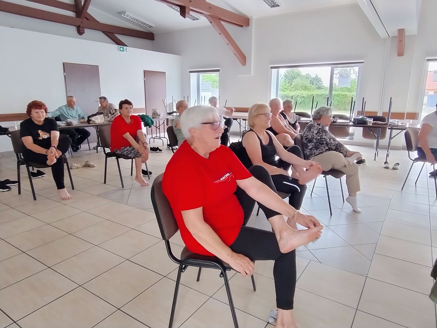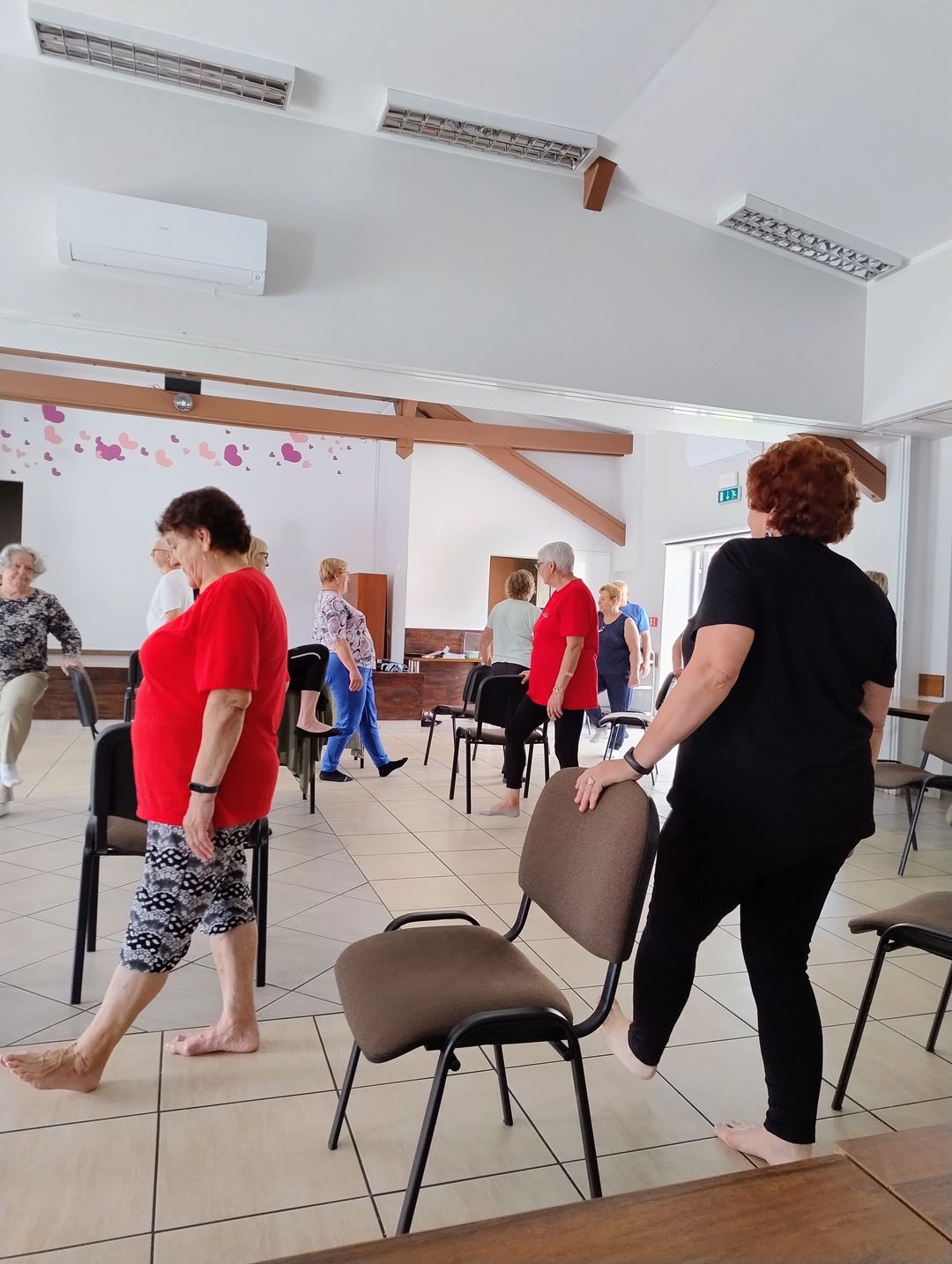 Każdy uczestnik mógł wykonywać ćwiczenia we własnym tempie, a gdy ktoś się zaplątał we własne skarpetki – wsparcie było natychmiastowe. Atmosfera była przyjazna i motywująca, a uczestnicy wyraźnie docenili nie tylko fizyczne korzyści, ale też możliwość integracji i wspólnego spędzenia czasu.