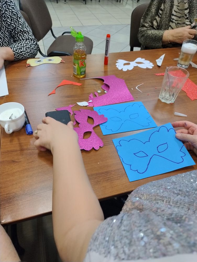 " Kawka dla seniora" - odbyły się warsztaty manualne i kreatywne, podczas których seniorzy wykonali maski karnawałowe 🎭